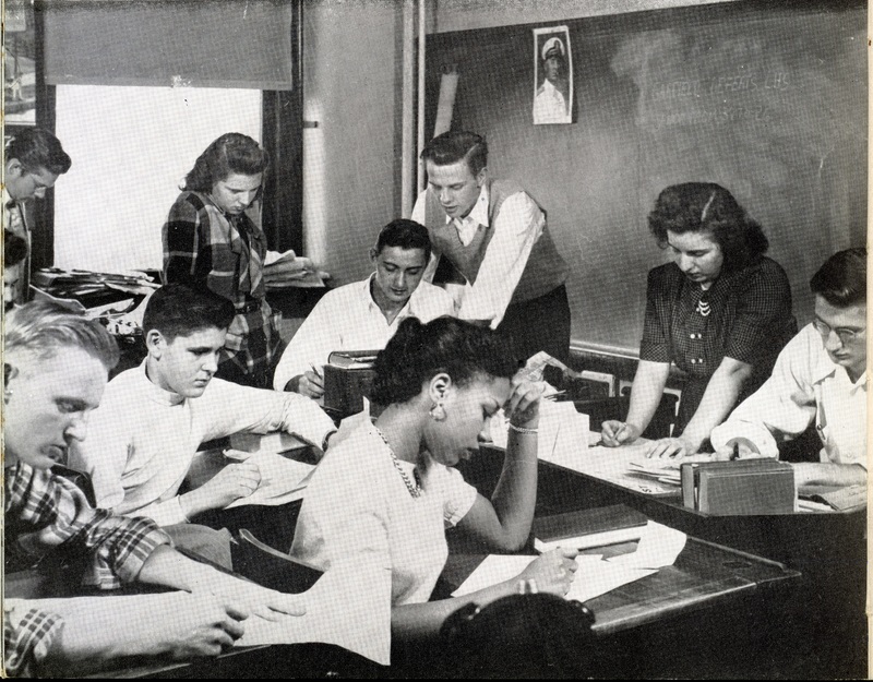 Chloe Wofford (Toni Morrison) working on the Lorain High School "Hi-Standard" newspaper .