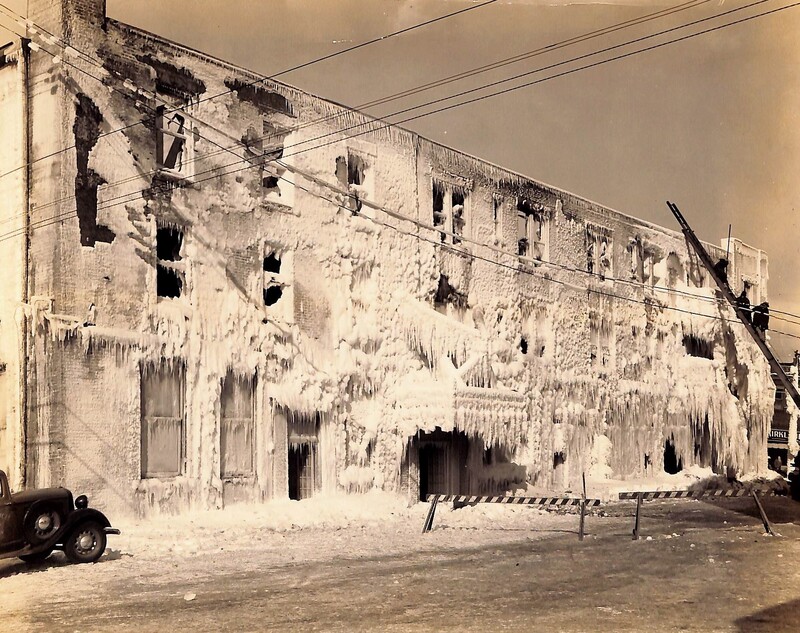 The Hotel Lorain was destroyed by fire during a severe cold snap on February 18, 1936. The hotel was located at the corner of West 7th Street and Broadway in Lorain, Ohio. Photographer unknown.