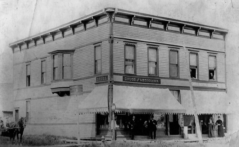 The store in 1905 was located in the same building with Honecker Drugs. The signage on the building is "Drugs" and "Drugs and Medicine" on the left side, and "City Book Store" on the right side of the building. The words "Soda Water" are printed on the awning around the left corner of the building.